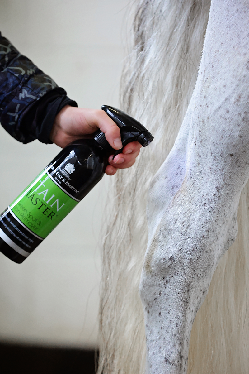 Stain Master is a fast-acting and versatile grooming product designed to remove green spots, stable stains, and general dirt from your horse. Ideal for last-minute show preparation, it brightens white markings on the spot without the need to rinse. Its convenient formula also works as a dry shampoo, making it perfect for use in colder weather when bathing isn’t practical. Quick, effective, and easy to use, Stain Master helps keep your horse looking clean and polished anytime.