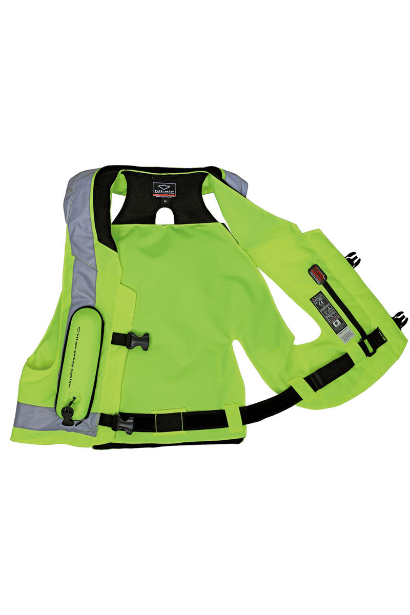 The Hit Air MLV2 Air Vest is newly certified under EN1621-4:2013 and designed for riders seeking enhanced spinal protection both in and out of the saddle. Similar in airbag construction to the MLV3, it features an added panel of back padding for extra support, making it a popular choice for hackers and riders with pre-existing spinal conditions. Once inflated, it offers comprehensive protection to the chest, spine, ribcage, lower back, and neck, and continues to provide some passive spinal support even after deployment. The MLV2 comes complete with a saddle strap, lanyard, CO₂ canister, and full instructions for use.